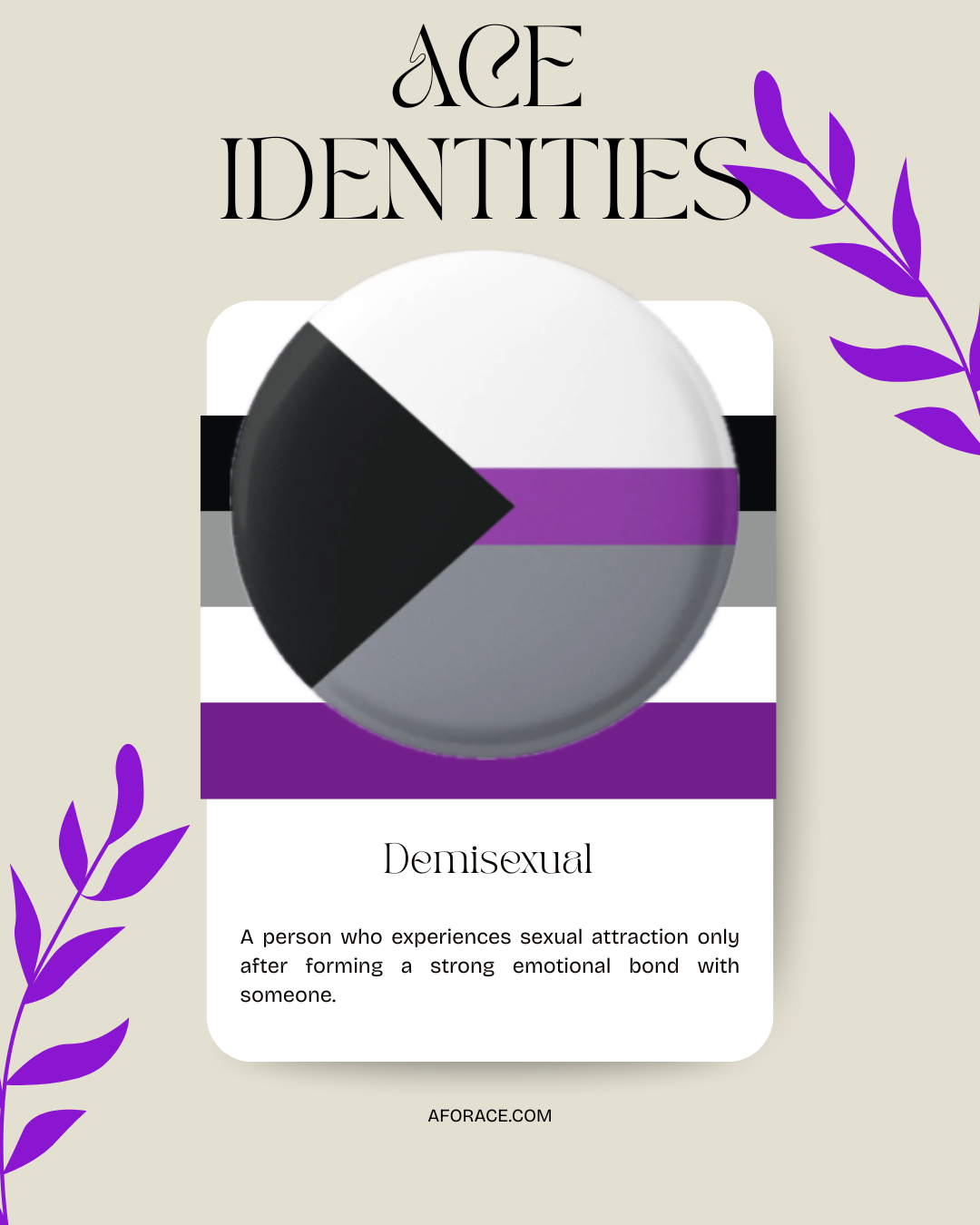 The asexual spectrum (Ace-Spec) is a continuum of sexual orientations for people who experience little to no sexual attraction. The various terms used on this spectrum are generally broken down into asexual identities and more specific microlabels.
